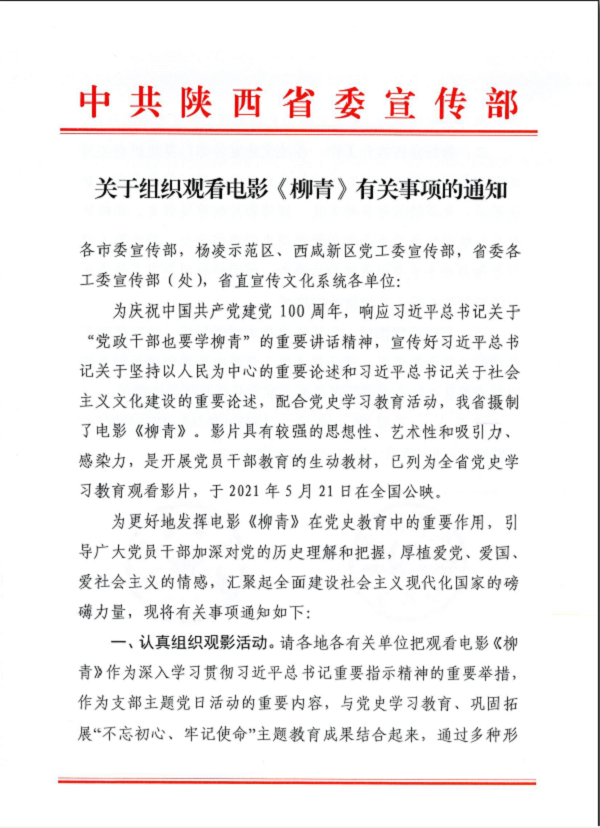Öй²ÉÂÎ÷ʡίÐû´«²¿¹ØÓÚ×é֯ԢĿӰϷ¡¶ÁøÇà¡·ÓйØÊÂÏîµÄ֪ͨ