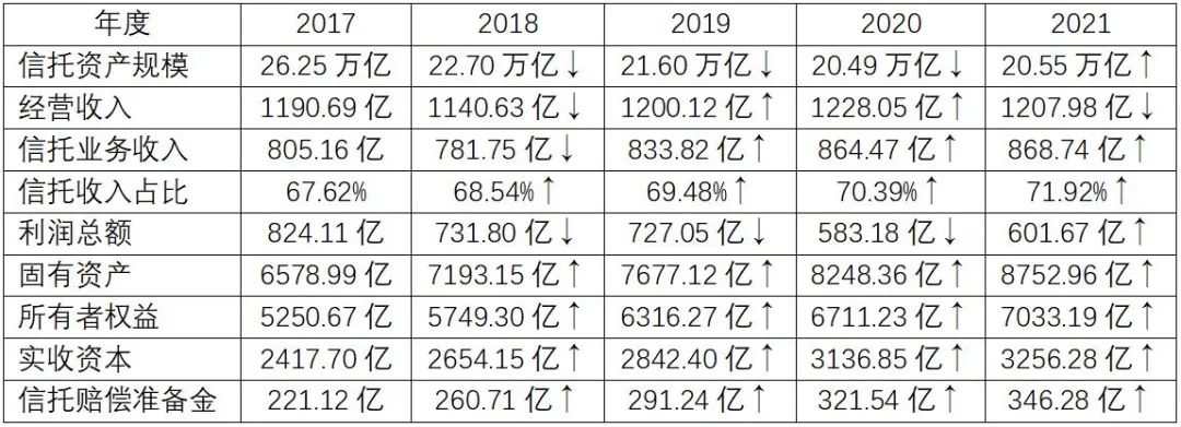 2021Äêµ×£¬£¬£¬£¬£¬È«ÐÐҵʵÏÖı»®ÊÕÈë1207.98ÒÚÔª£¬£¬£¬£¬£¬Ïà±ÈÉÏÄêβ1228.05ÒÚÔªÂÔ½µ1.63%£¬£¬£¬£¬£¬Ïà¶ÔƽÎÈ¡£¡£¡£¡£¡£ÊÂʵÉÏ£¬£¬£¬£¬£¬×Ô2018Äêµ÷½âÒÔÀ´£¬£¬£¬£¬£¬ËäÈ»ÐÅÍÐ×ʲú¹æÄ£½µ·ù½Ï´ó£¬£¬£¬£¬£¬µ«ÐÅÍÐҵı»®ÊÕÈëÒ»Ö±¼á³ÖÁËÏà¶ÔƽÎÈÌ¬ÊÆ£¬£¬£¬£¬£¬ËÄÄê¼äÓÐÔöÓмõµ«Í¬±ÈÔö¼õ·ù¶È¾ù²»´ó£¬£¬£¬£¬£¬»®·ÖΪ-4.20%¡¢+5.22%¡¢+2.33%¡¢-1.63%¡£¡£¡£¡£¡£